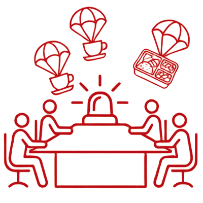 Jesteśmy gotowi na niestandardowe wezwania. Dowieziemy posiłki regeneracyjne i serwis kawowy w trybie pilnym, zawsze gdy sytuacja wymknie się spod kontroli.